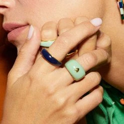 EXCLUSIVITE WEB : Bague, en laiton dorĂ© 750/1000 et acetate, l’insert intĂ©rieur en mĂ©tal est gravĂ© de petits coeurs.