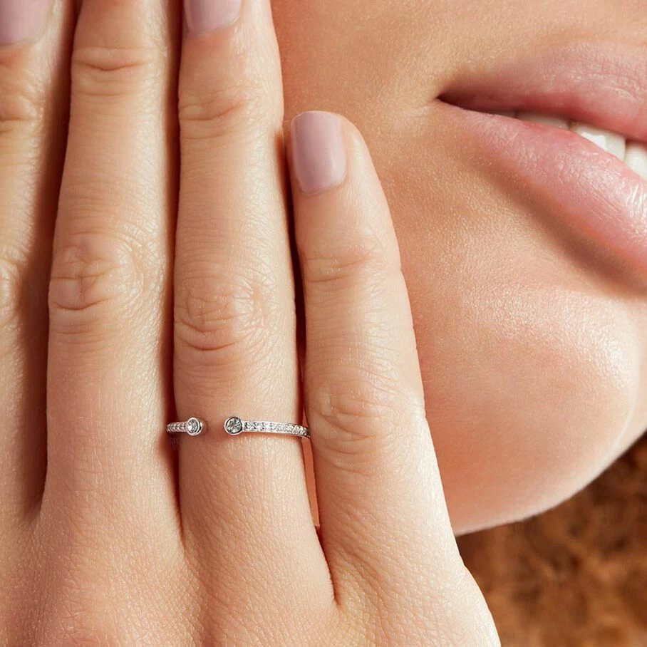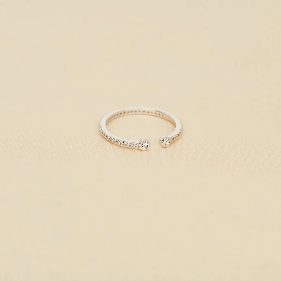 Bague fine ouverte en argent vĂ©ritable pavĂ©e d’oxydes de zirconium et et ornĂ©e de deux oxydes sertis aux extrĂ©mitĂ©s
