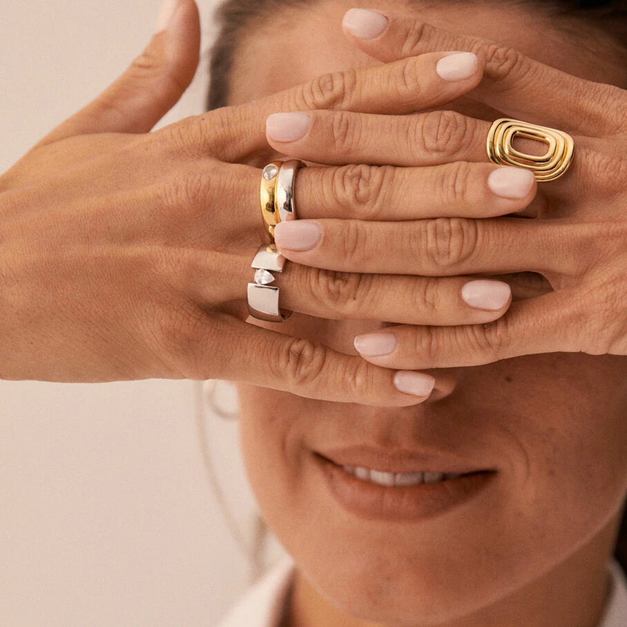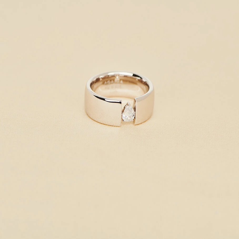 Bague large, en argent véritable, avec un oxyde de zirconium de forme poire enserré dans le corps de bague