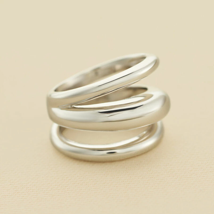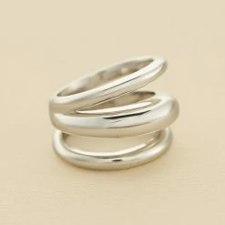 Bague large en argent véritable formée de trois anneaux bombés