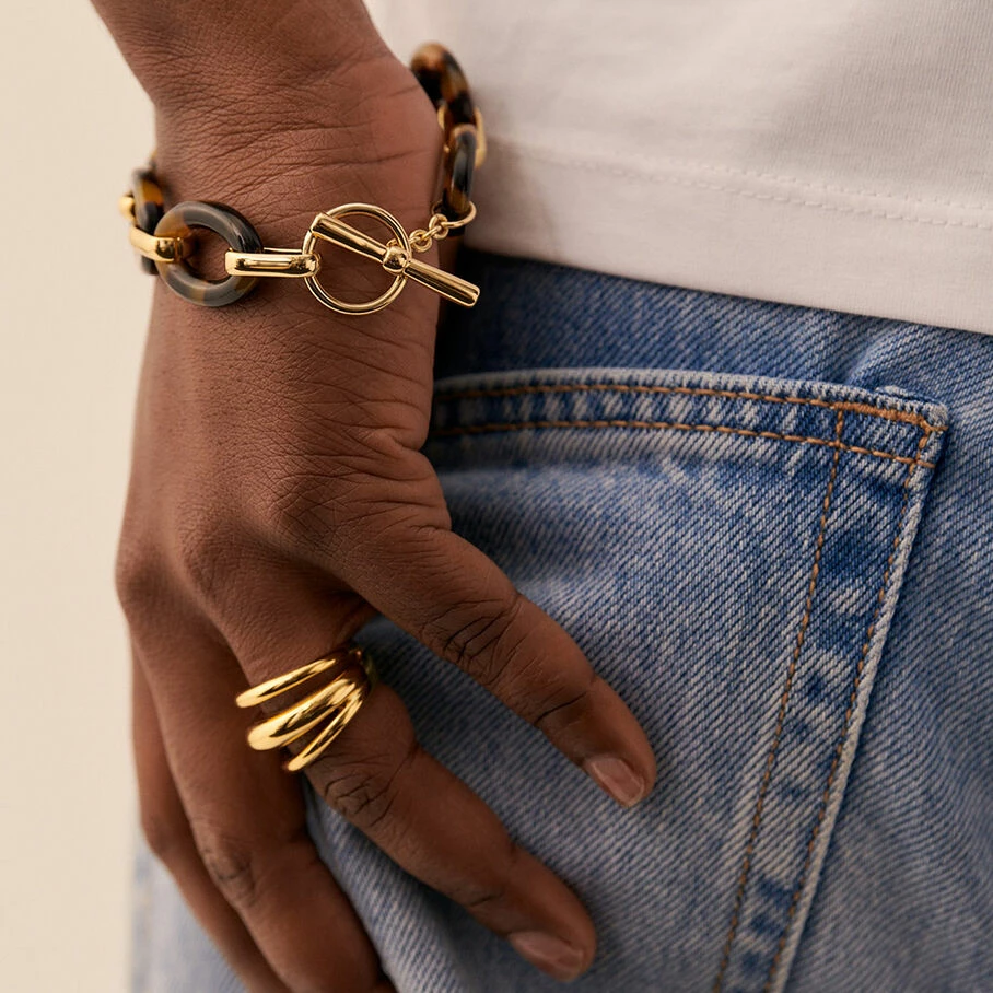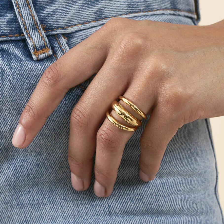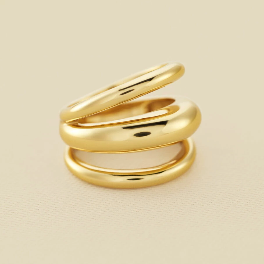 Bague, en argent véritable doré 750/1000, faite de 3 joncs bombés