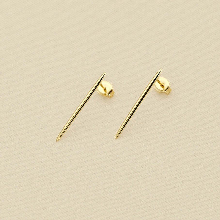 Boucles d’oreilles linĂ©aires, en argent vĂ©ritable 925/1000 et dorĂ©es 750/1000, au motif rayon de soleil.