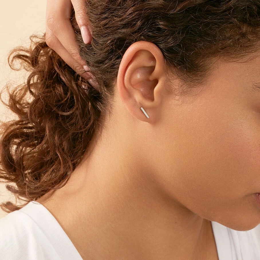 Boucles d’oreilles puces en argent vĂ©ritable formĂ©es de petites barres pavĂ©es d’oxydes de zirconium