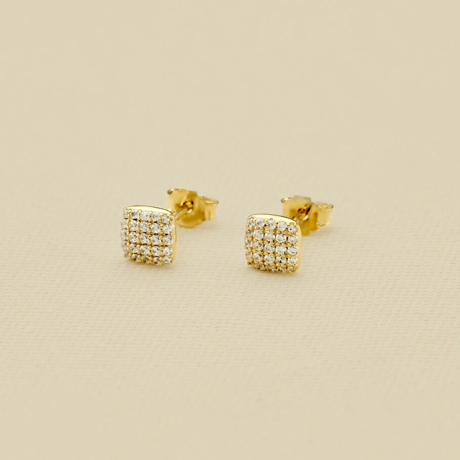 Boucles d’oreilles puces, en argent vĂ©ritable dorĂ© 750/1000, en forme de coussin et serti d’oxydes de zirconium