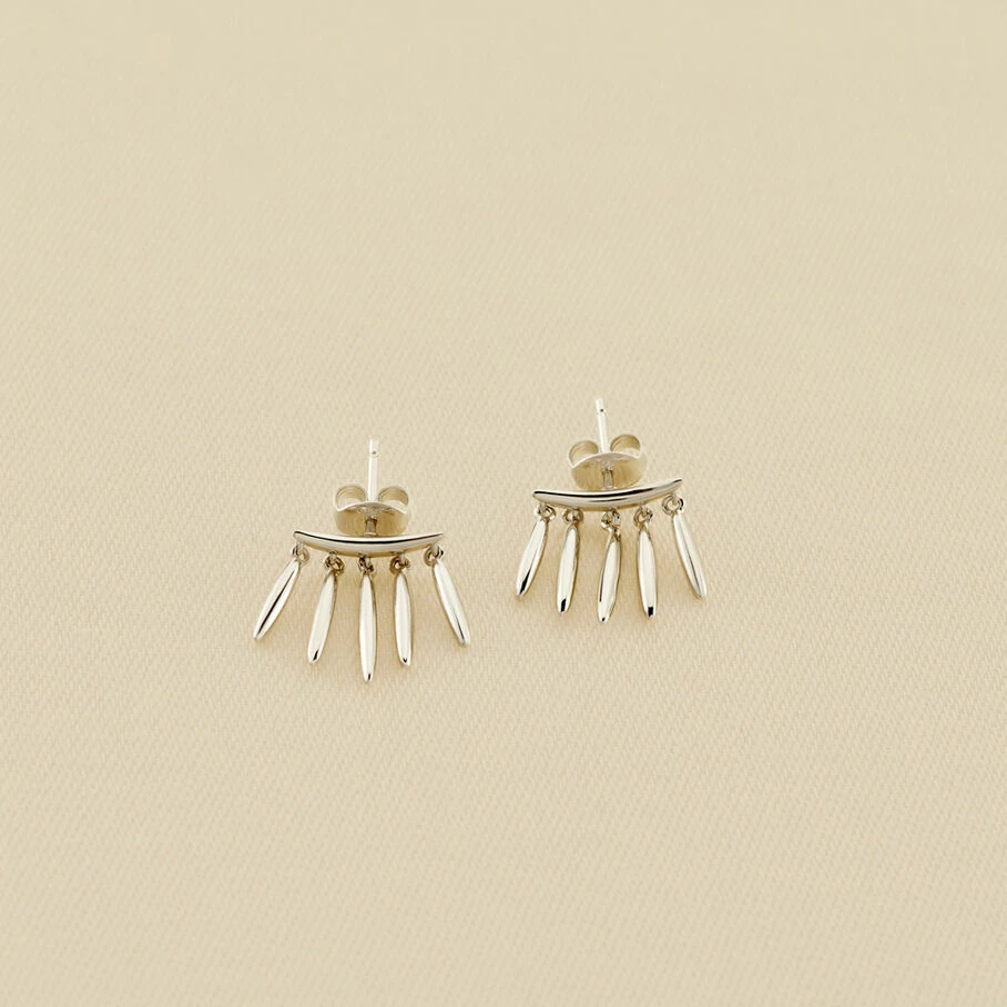 Boucles d’oreilles puces, en argent vĂ©ritable 925/1000, ornĂ©es d’un rideau de pampilles au motif rayon de soleil.