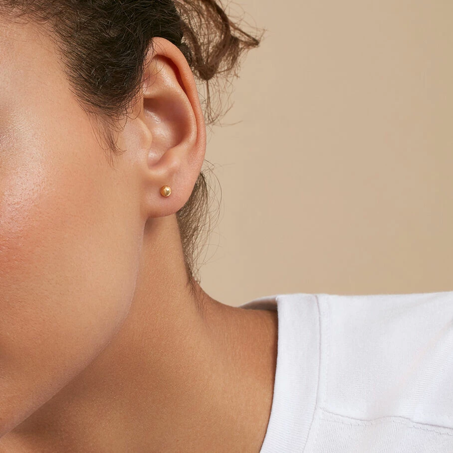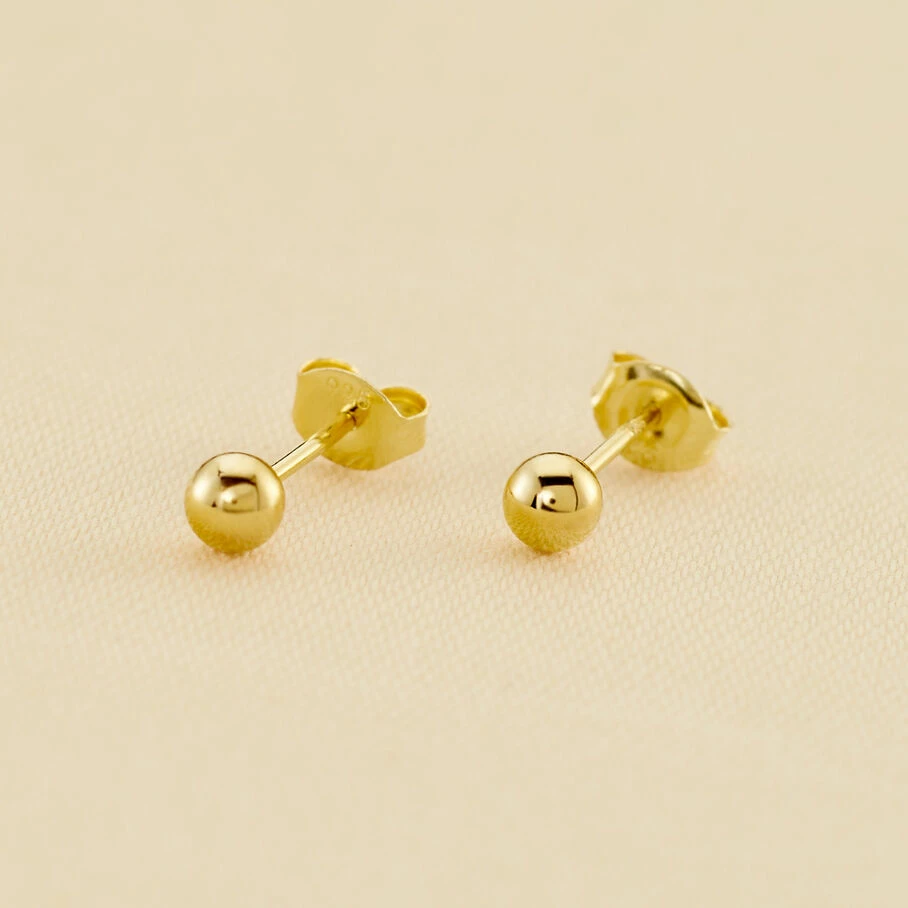 Boucles d’oreilles puces 4mm, en argent vĂ©ritable dorĂ©es 750/1000, ornĂ©es d’une boule