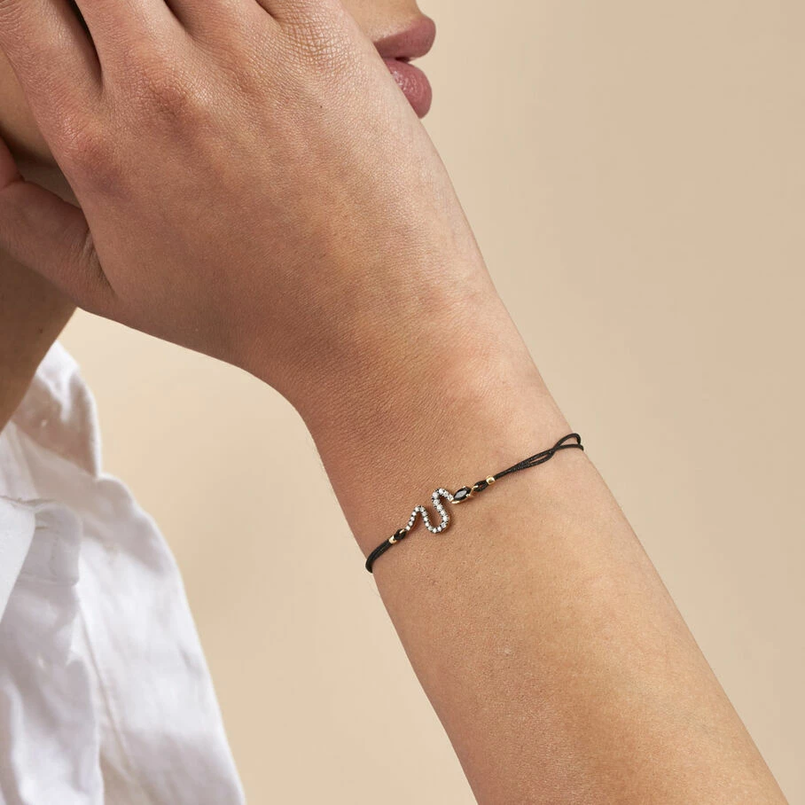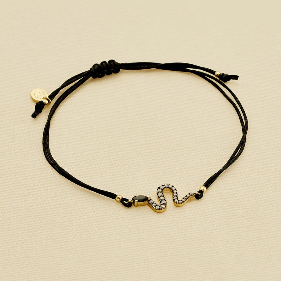 Bracelet cordon ornĂ© d’un serpent en argent vĂ©ritable dorĂ© 750/1000 pavĂ© d’oxydes de zirconium