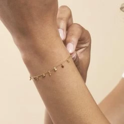 Bracelet, en argent véritable doré 750/1000, avec en pampille des petites lunes et des petites étoiles