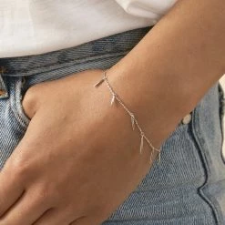 Bracelet chaine fine, en argent 925/1000, orné de cinq pampilles rayonnantes.