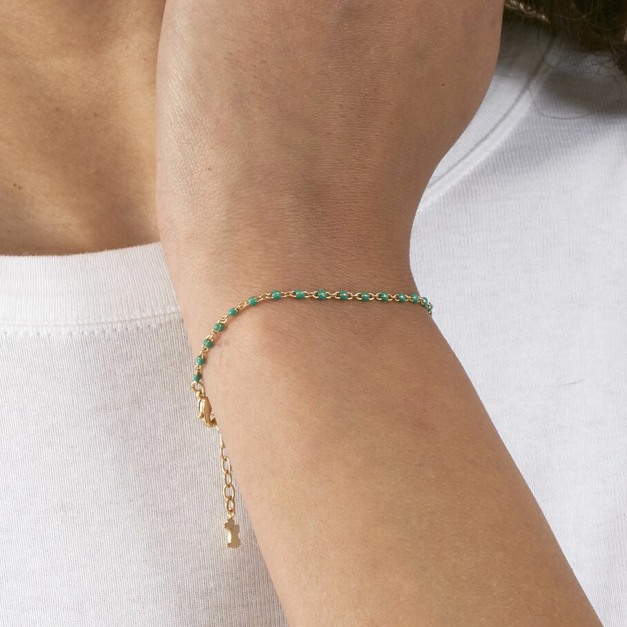 Bracelet, en laiton dorĂ© 750/1000, perles d’Ă©mail sur toute la longueur