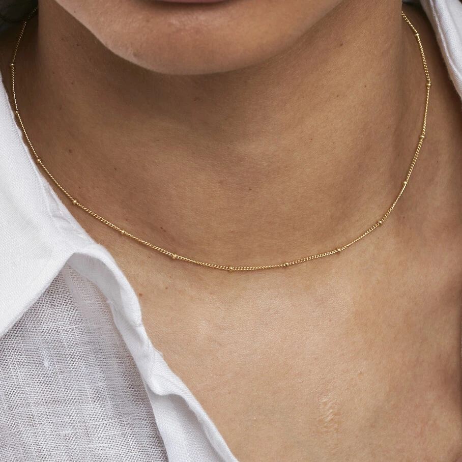 Chaßne courte en argent véritable doré 750/1000, chaßne forçat et mini boules