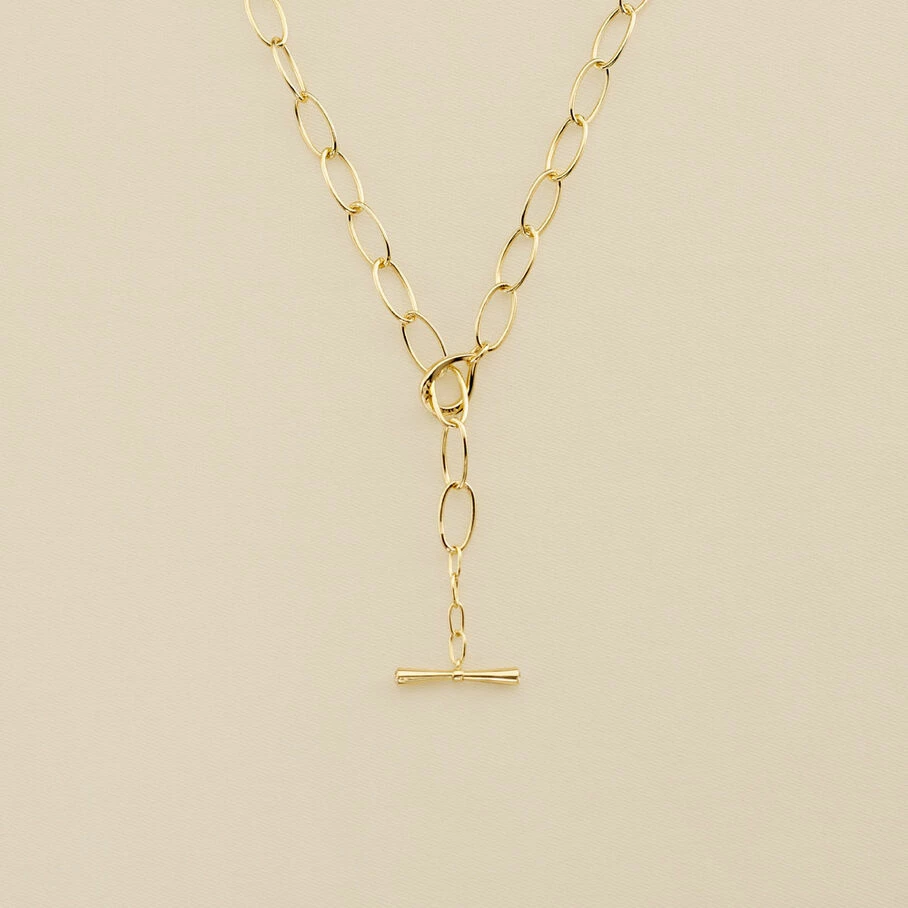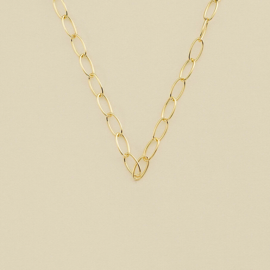 Collier chaine, en laiton doré, composé de maillons ovales allongés