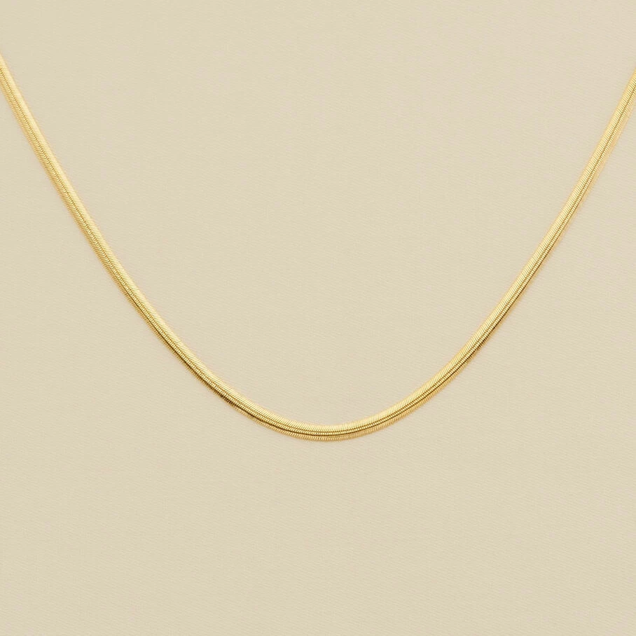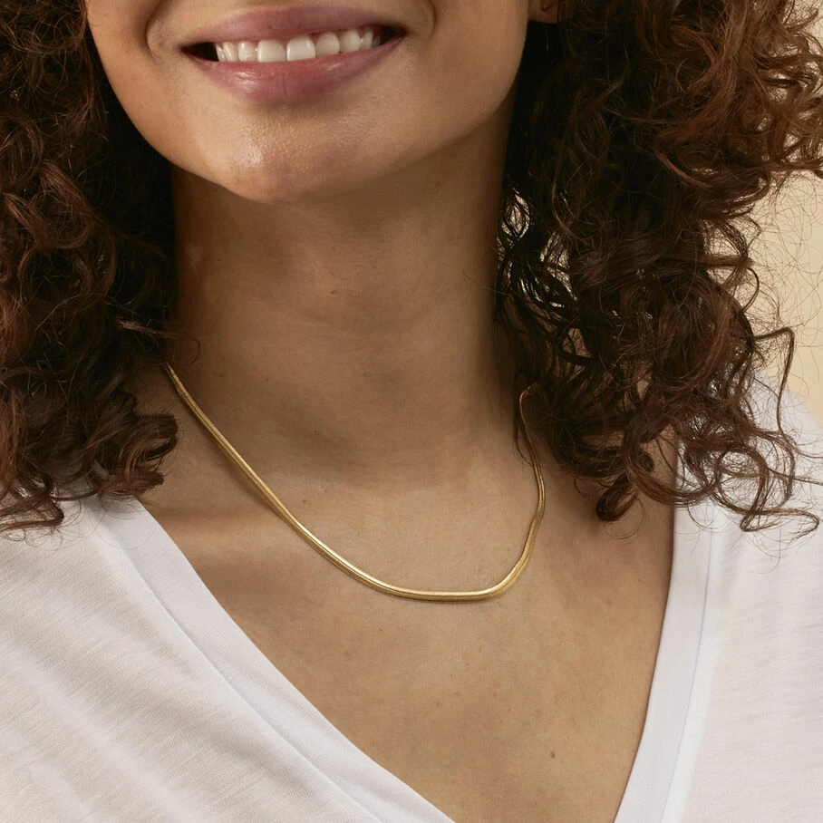 Collier mi-long,en argent vĂ©ritable dorĂ© 750/1000, fait d’une chaine maille serpent plate