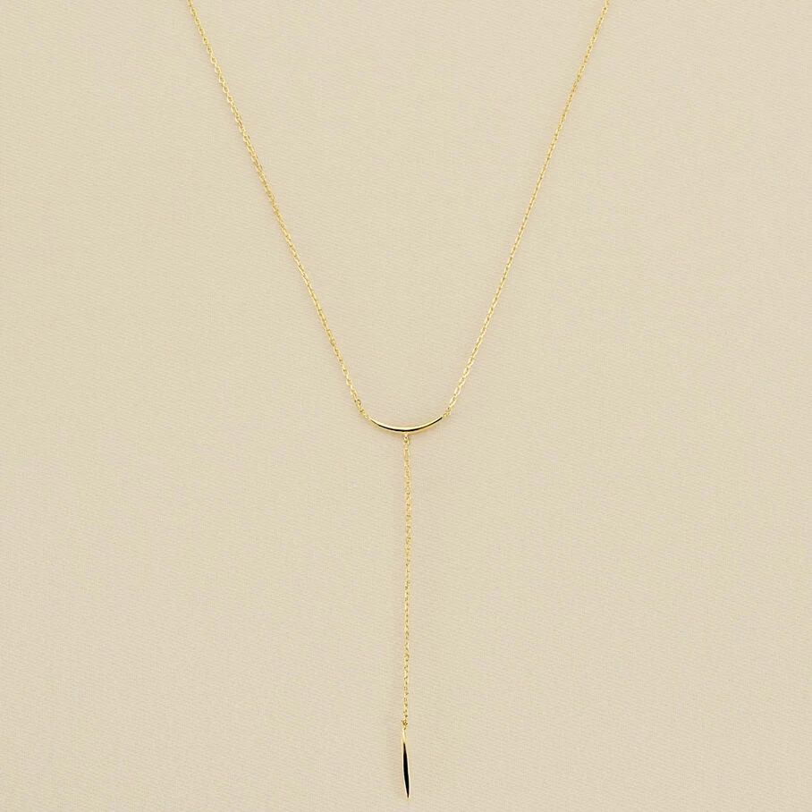 Collier Y sur chaine, en argent véritable 925/1000 et doré 750/1000, au pendentif en forme de rayon de soleil.