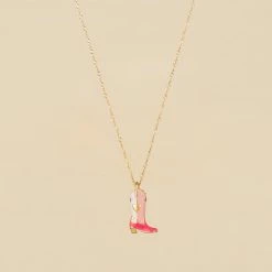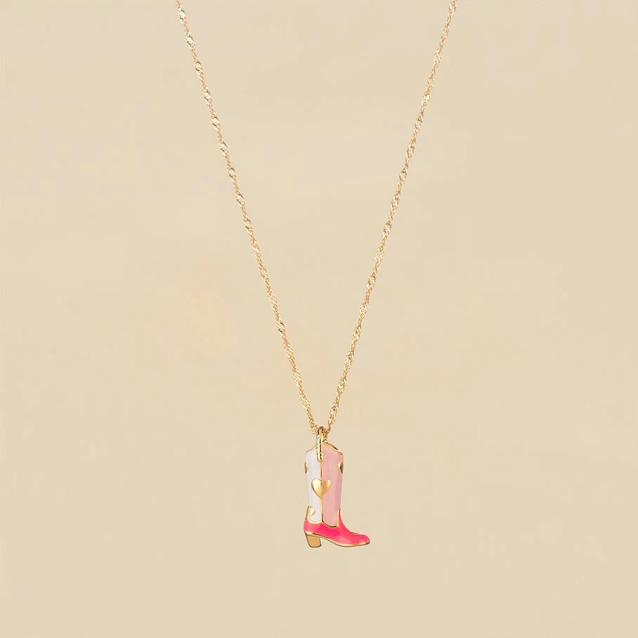 Collier mi-long, en laiton doré 750/1000, botte émaillée sur chaine