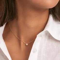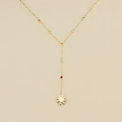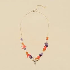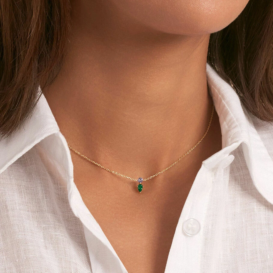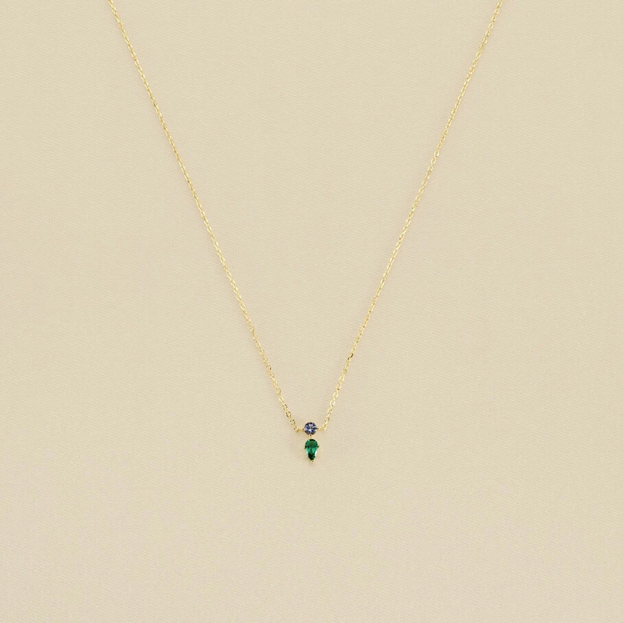 Collier court, en argent véritable doré 750/1000, avec des oxydes de zirconium multicolores en pendentif