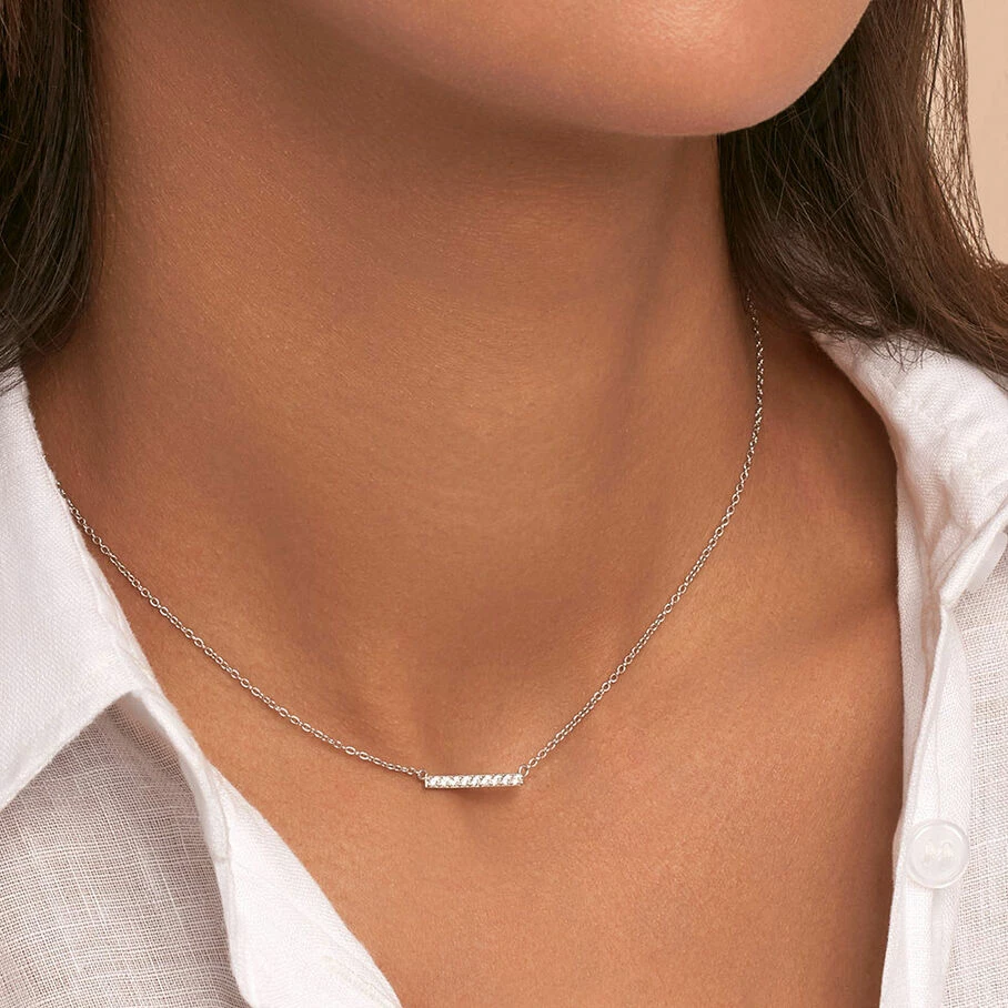 Collier court en argent vĂ©ritable ornĂ© d’une petite barre rigide pavĂ©e d’oxydes de zirconium