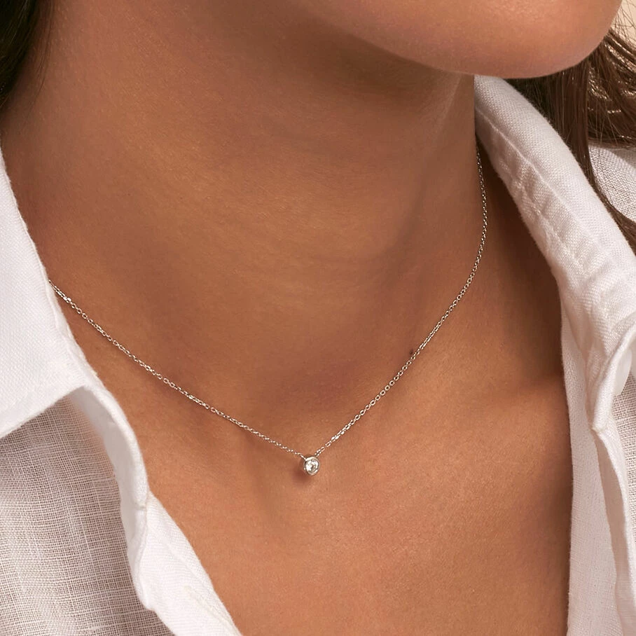 Collier court en argent vĂ©ritable ornĂ© d’un oxyde de zirconium serti clos