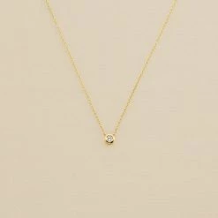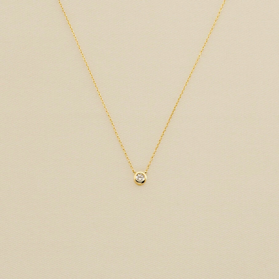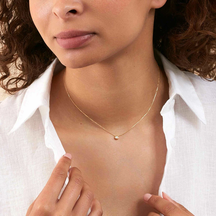 Collier court en argent vĂ©ritable dorĂ© 750/1000, ornĂ© d’un oxyde de zirconium serti clos