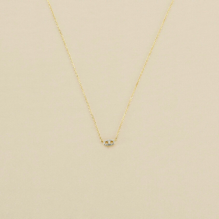 Collier court, en argent véritable doré 750/1000, avec un grain de café pavé sur ruthénium, monté sur une fine chaine maille forçat