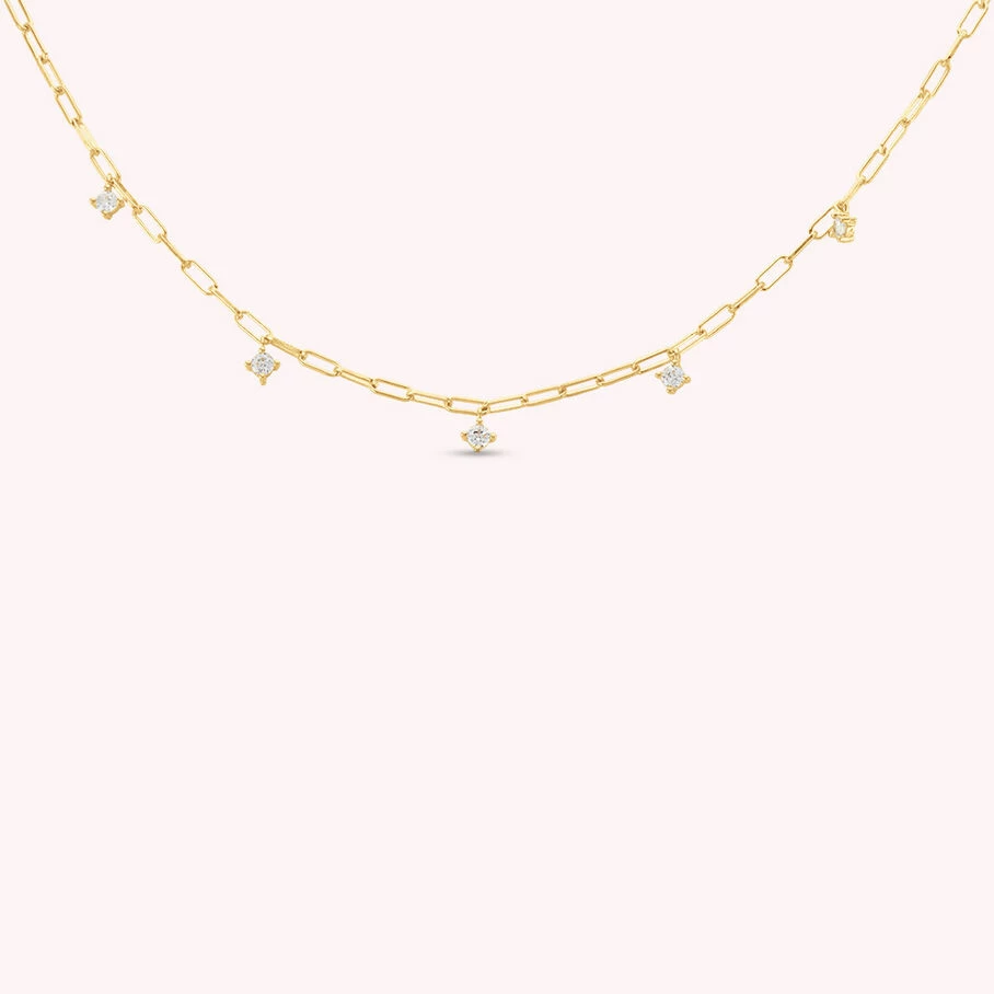 Collier court, chaine rectangle avec 5 oxydes de zirconium sertis griffes, en argent doré 750/1000