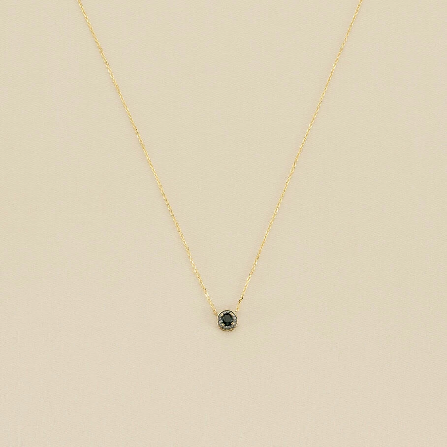 Collier court sur chaine, en argent véritable doré 750/1000, avec un mini oxyde rond autour duquel sont micro sertis des oxydes de zirconium