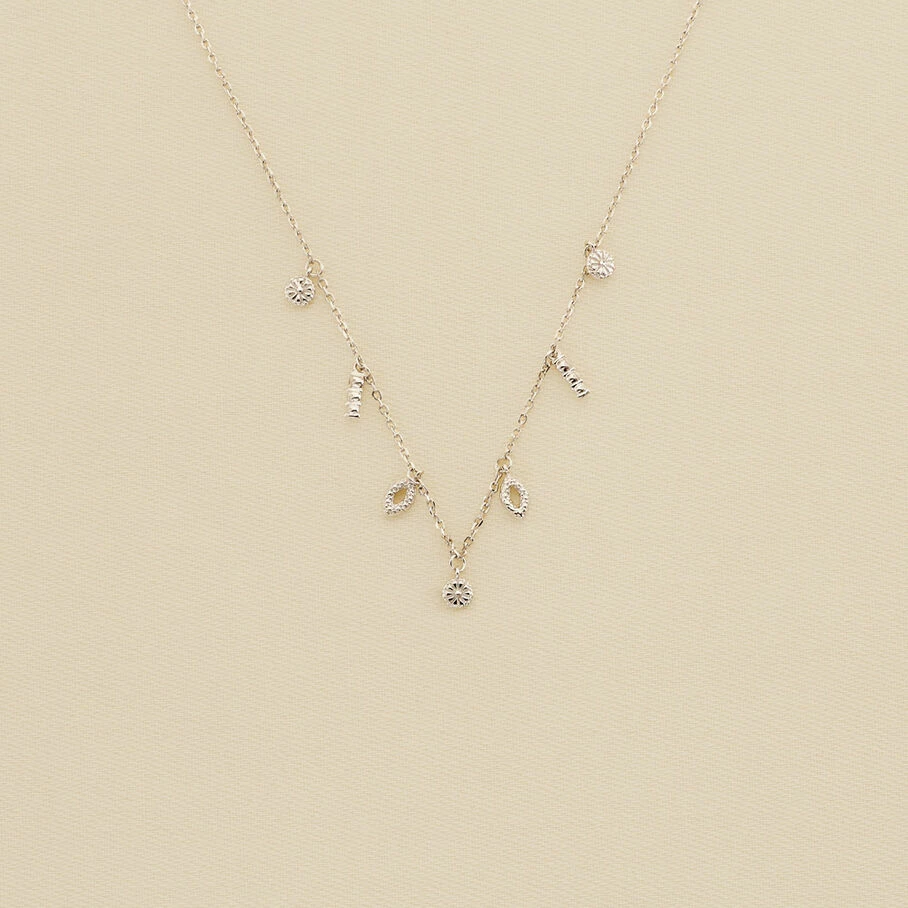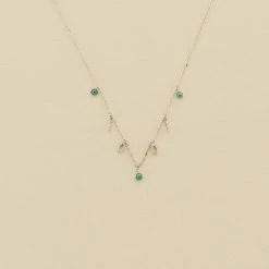 Collier chaine maille forçat, en argent véritable 925/1000, orné de différentes pampilles: Œils turcs, oxydes de zirconium…