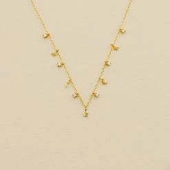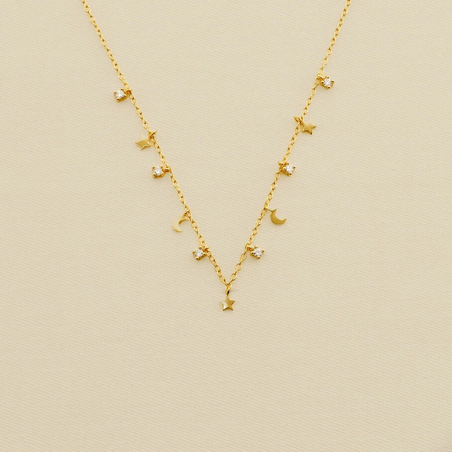 Collier, en argent véritable doré 750/1000, avec des mini pampilles lunes et étoiles