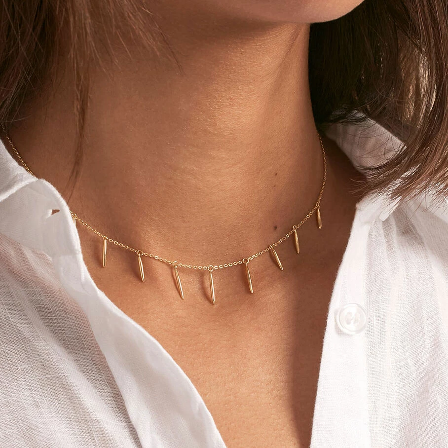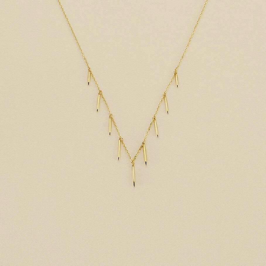Collier chaine fine, en argent 925/1000 et doré 750/1000, orné de pampilles rayonnantes.