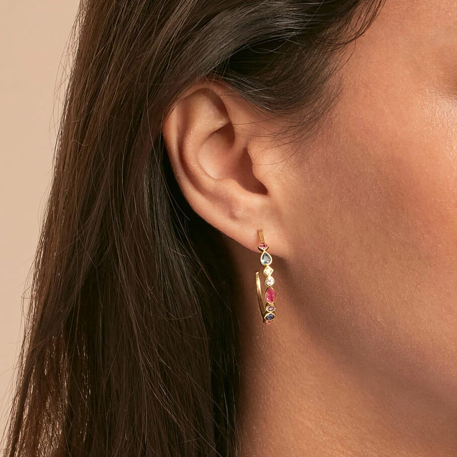 Créoles en laiton doré 750/1000 avec des oxydes de zirconium de différentes formes