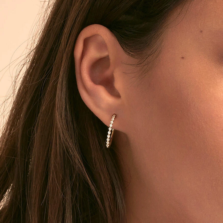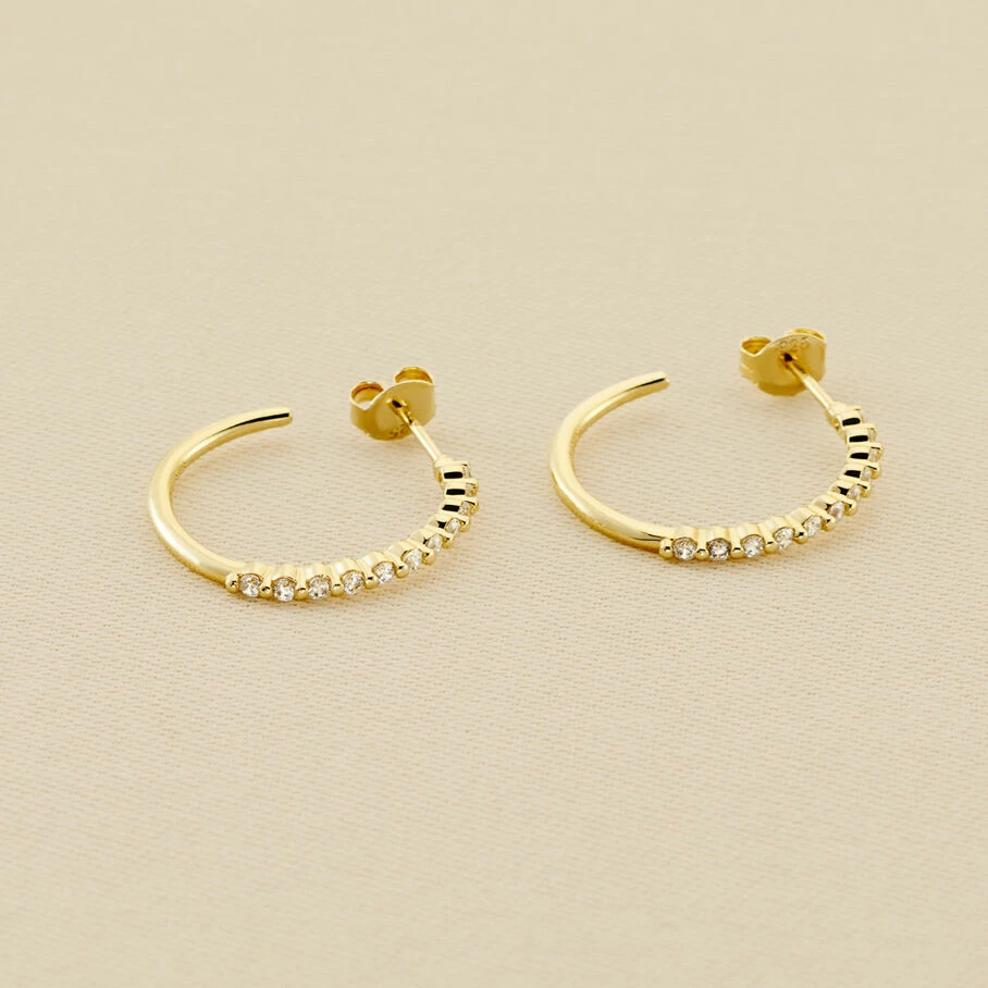 Créoles de 20mm de diamètre, en argent 925/1000 doré 750/1000, sur laquelle ont été sertis clos une série d’oxydes de zirconium