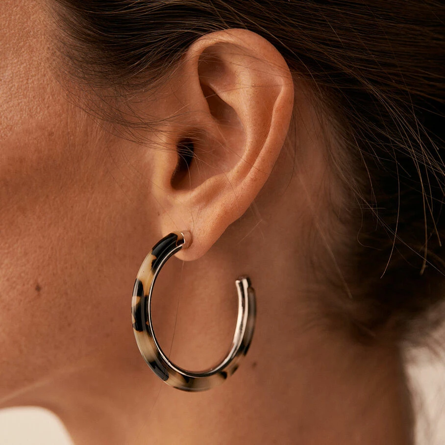 Boucles d’oreilles créoles de 45 mm de diamètre en laiton et acétate de couleur