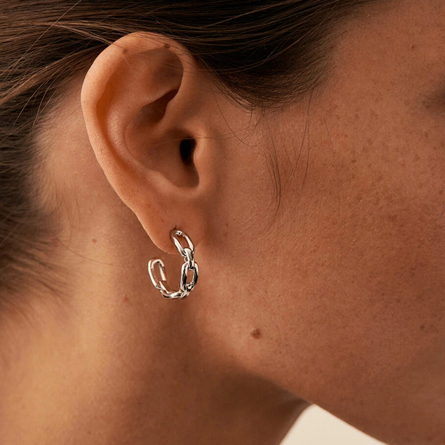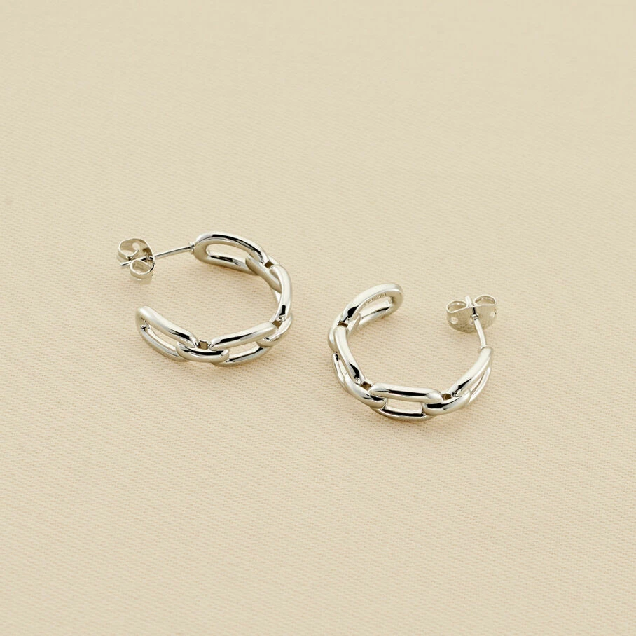 Créoles de 20mm de diamètre formée d’une maille rectangulaire rigide. Laiton plaqué avec de l’argent véritable.