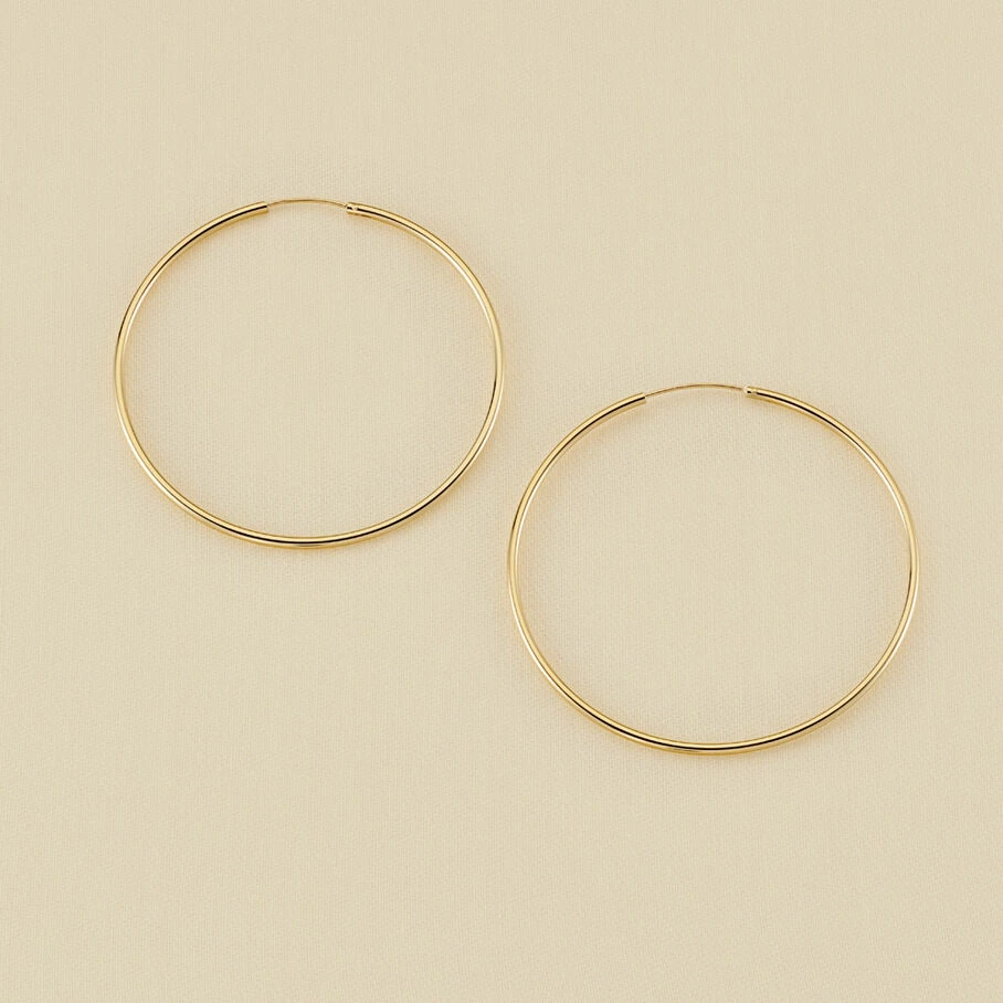 Créoles en argent véritable doré 750/1000 d’un diamètre de 50mm.