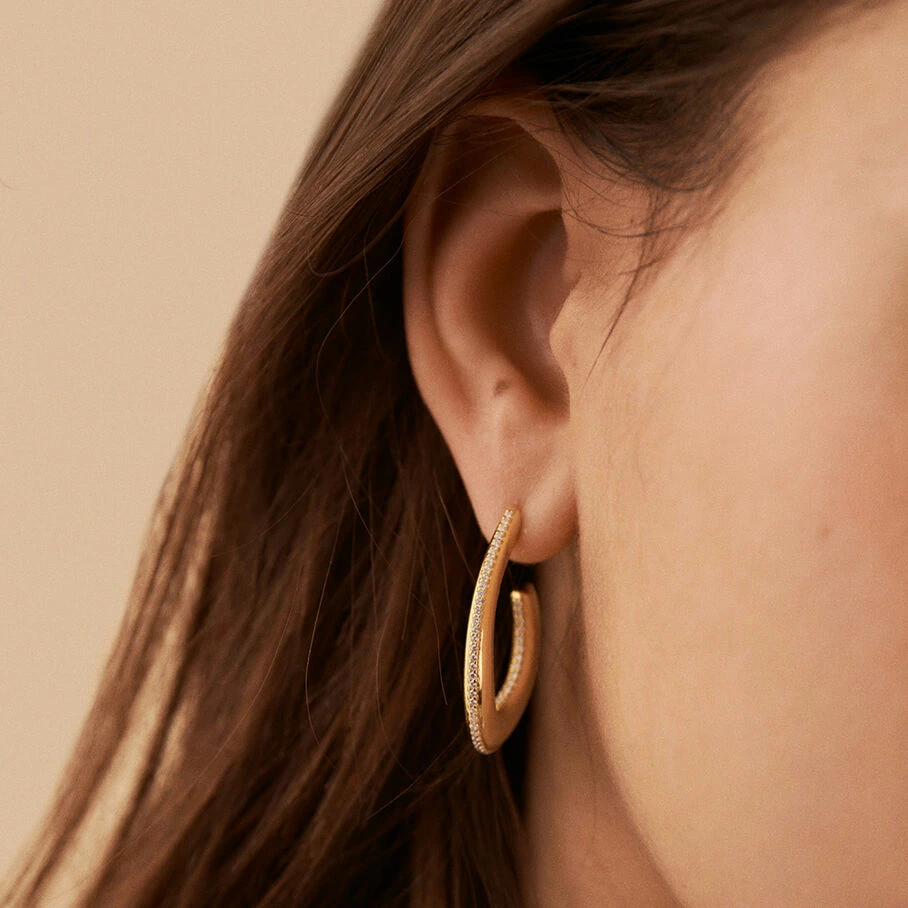 Créoles, grand modèle, en argent 925/1000 et dorées 750/1000, représentant une demi goutte et dont la tranche est sertie d’oxydes de zirconium
