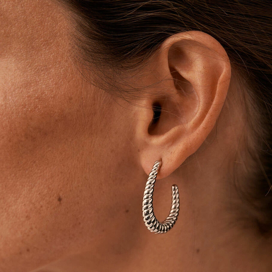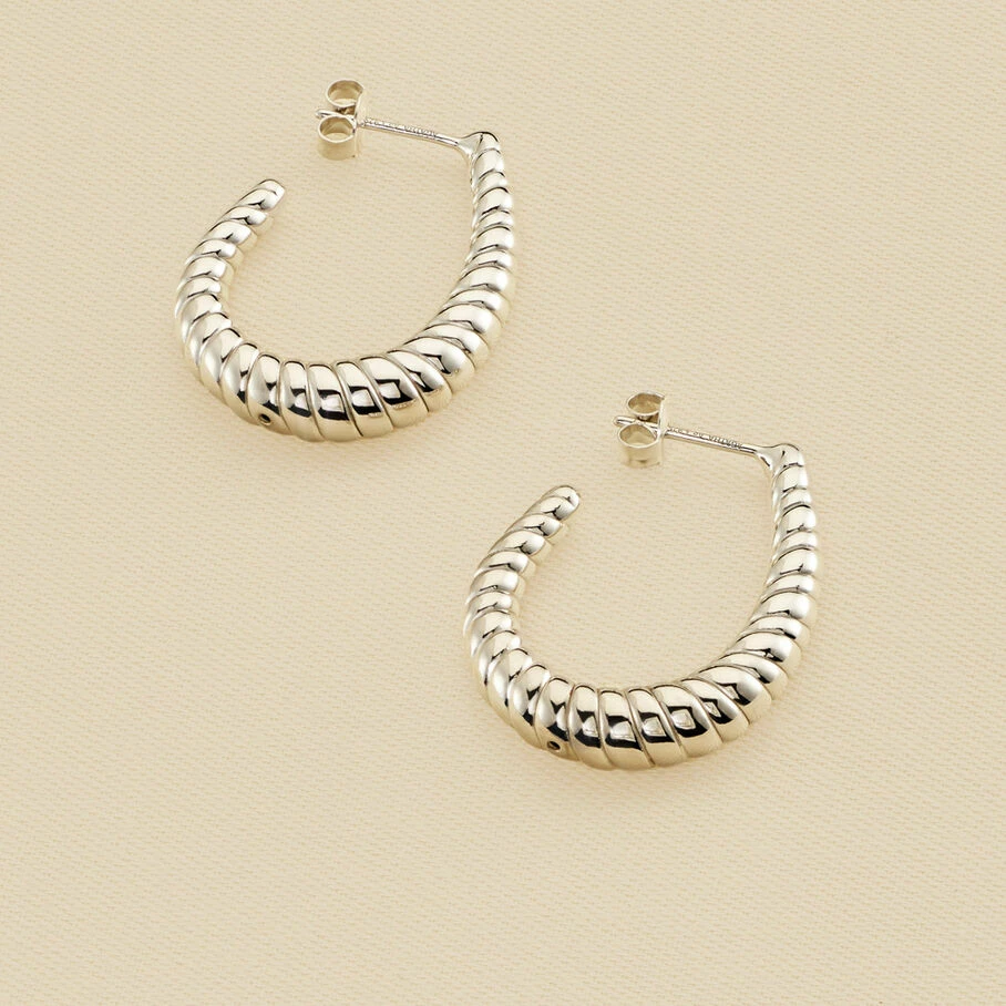 Créoles, en argent véritable, en forme de goutte et dont le fil est torsadé