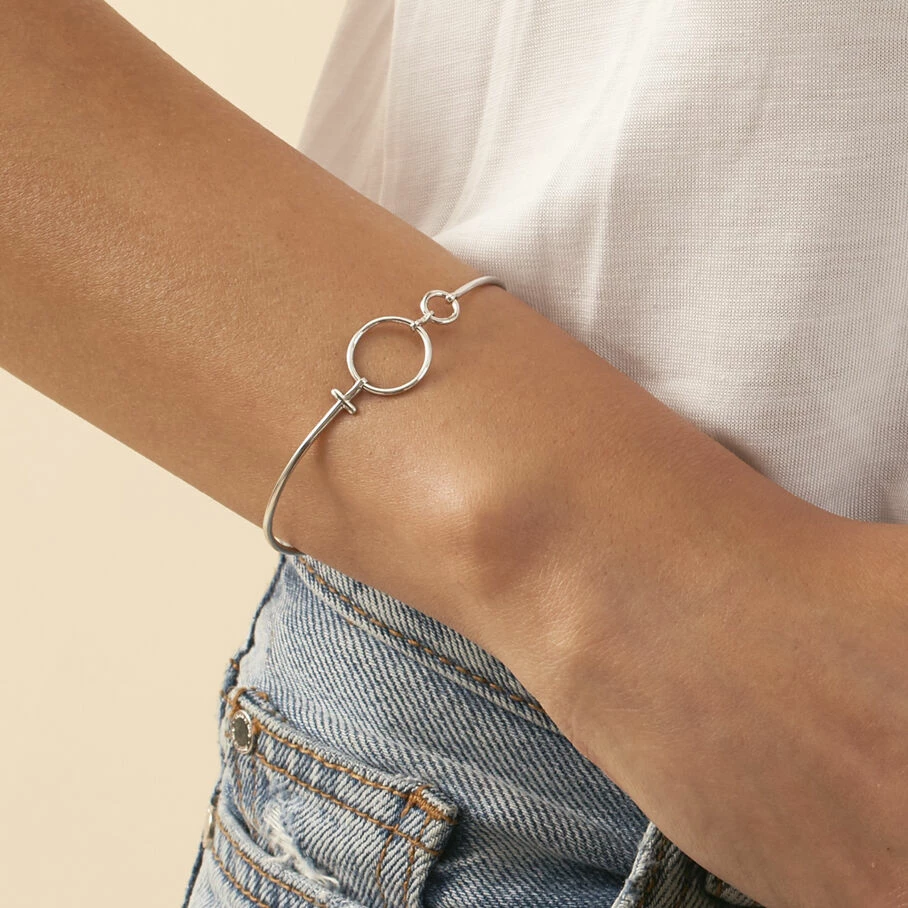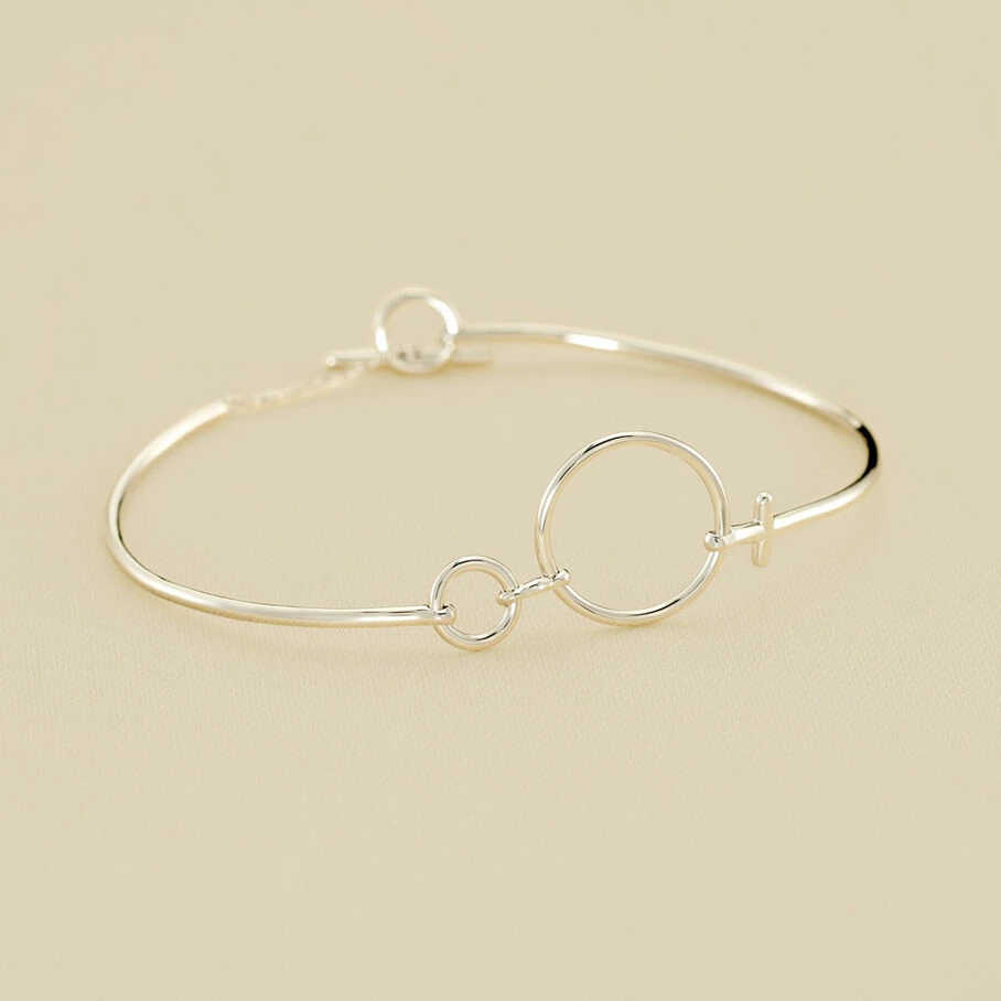 Jonc fin, en argent véritable, avec memory wire, dont le motif rappelle le symbole de la femme