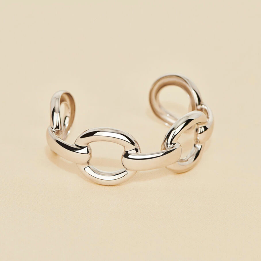 Bracelet manchette large en argent véritable avec un effet chaîne rigide