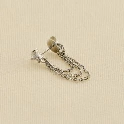 Créole souple, en argent 925, oxydes de zirconium et triple chaines. A l’unité pour mieux les mixer et les accumuler.