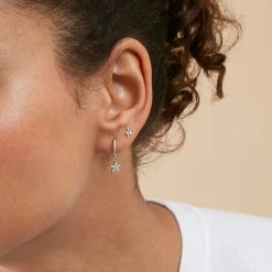 Mini créole en argent véritable ornée d’une étoile pavée d’oxydes de zirconium en pampille. A l’unité, pour mieux les mixer et les accumuler.