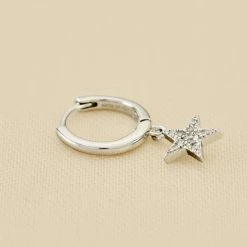 Mini créole en argent véritable ornée d’une étoile pavée d’oxydes de zirconium en pampille. A l’unité, pour mieux les mixer et les accumuler.