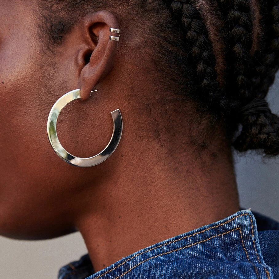 Faux piercing en argent vĂ©ritable, bague d’oreille double anneau. A l’unitĂ©, pour mieux les mixer et les accumuler.
