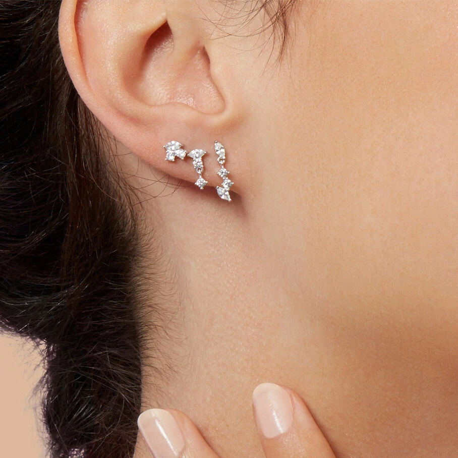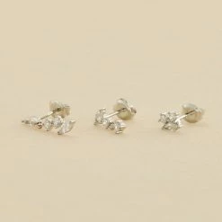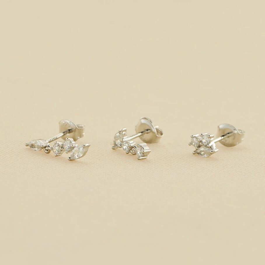 Set de 3 boucles d’oreilles puces, en argent 925, oxydes de ziconium de diffĂ©rentes formes sertis
