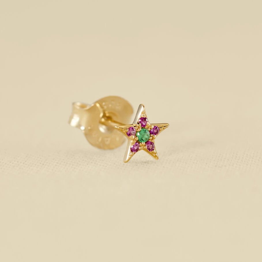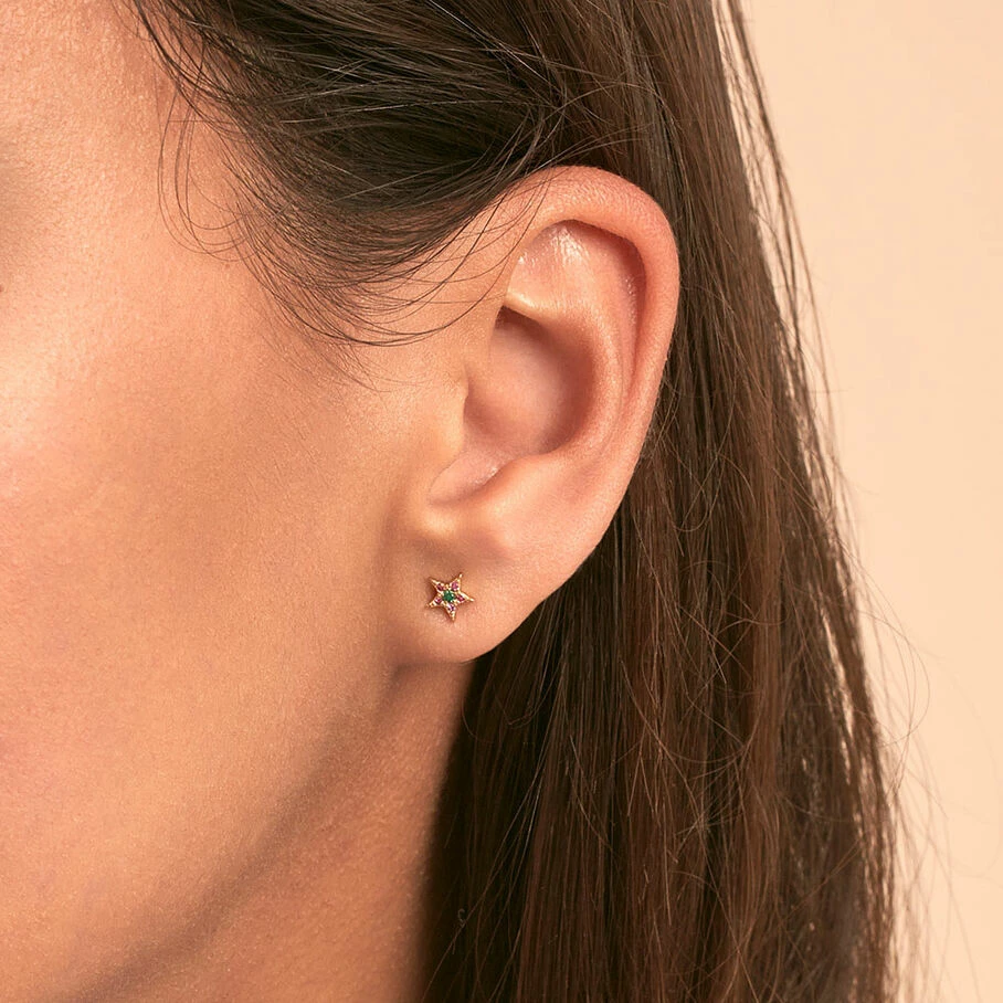 Boucle d’oreille puce en argent vĂ©ritable dorĂ© Ă l’or fin en forme de petite Ă©toile pavĂ©e d’oxydes de zirconium. A l’unitĂ©, pour mieux les mixer et les accumuler.