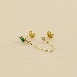 Boucle d’oreille double puce, en argent dorĂ© 750/1000, oxyde de zirconium en forme de goutte et losange pavĂ© d’oxydes de zirconium reliĂ©s par une chaine. Vendu Ă l’unitĂ©.