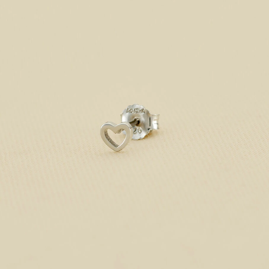 Boucle d’oreille puce en argent vĂ©ritable en forme de coeur Ă©vidĂ©. A l’unitĂ©, pour mieux les mixer et les accumuler.