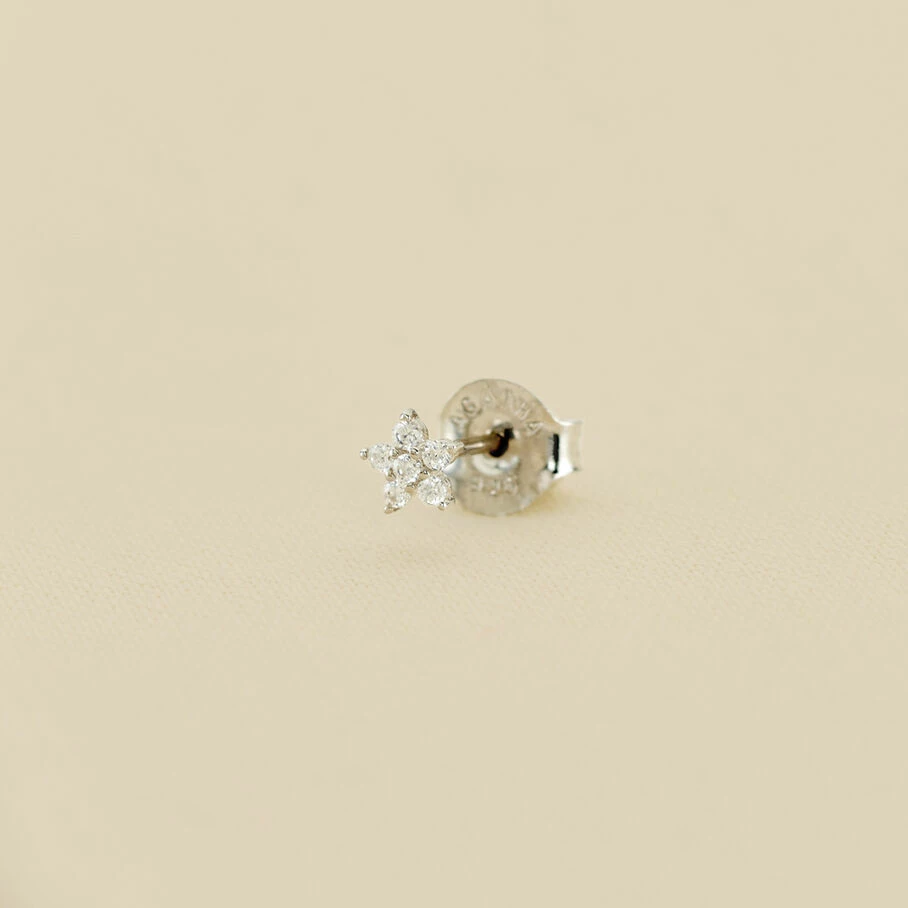 Boucle d’oreille puce en argent vĂ©ritable en forme de fleur pavĂ©e d’oxydes de zirconium. A l’unitĂ©, pour mieux les mixer et les accumuler.