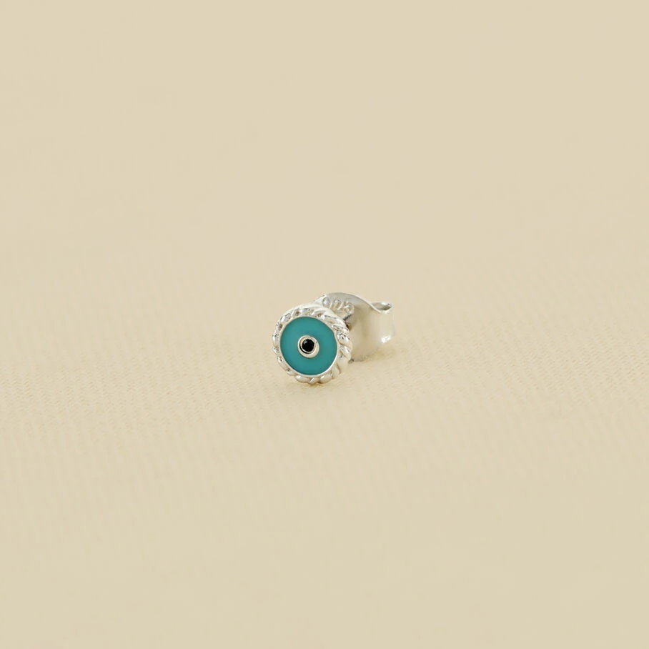 Boucle d’oreille puce Ă l’unitĂ©, en argent vĂ©ritable 925/1000, en forme d’Ĺ“il turc. L’iris Ă©maillĂ© et le contour de l’Ĺ“il serti d’oxydes de zirconium apportent un vrai raffinement et Ă©clat au produit!