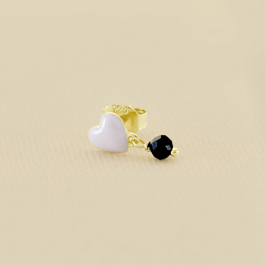 Boucle d’oreille puce Ă l’unitĂ©, en argent 925/1000 dorĂ© 750/1000, reprtĂ©sentant un cĆur recouvert d’une couche d’Ă©mail. AgrĂ©menter d’une pampille en pierre naturelle, cette piĂšce pourra parfaire votre look !