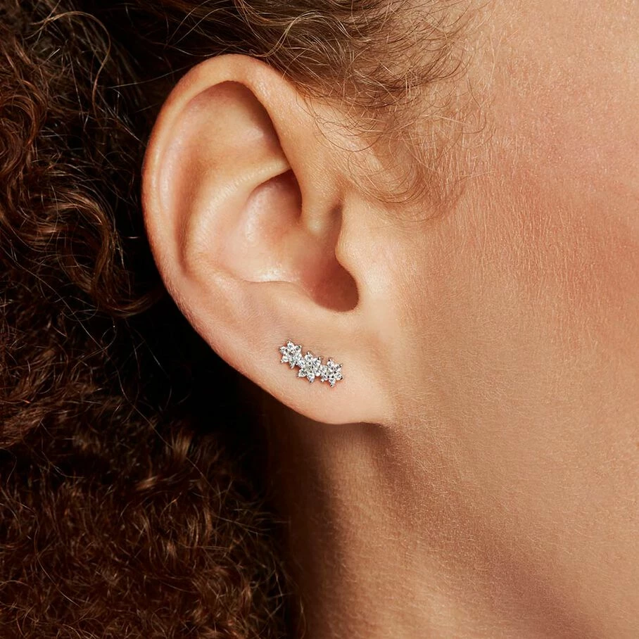 Boucle d’oreille puce en argent vĂ©ritable en forme de trois fleurs pavĂ©es d’oxydes de zirconium. A l’unitĂ©, pour mieux les mixer et les accumuler.